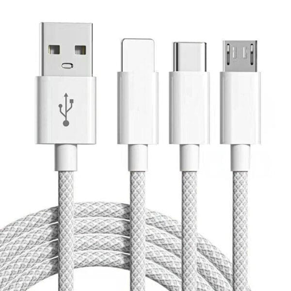 - 3 in 1: Cablu Timebox multifuncțional cu conectori USB, Type-C, Lightning și Micro-USB, oferind o soluție versatilă pentru încărcare și transfer de date.