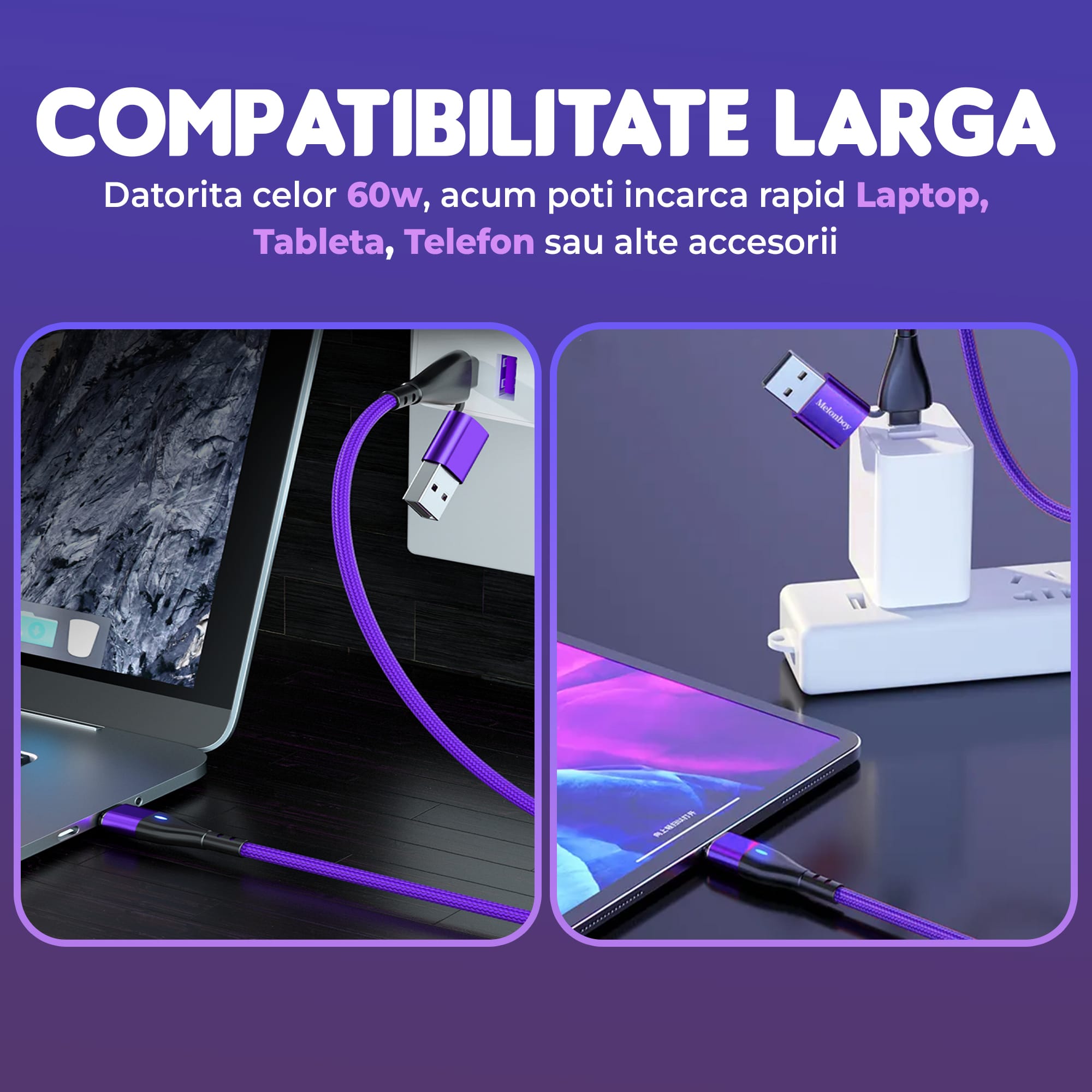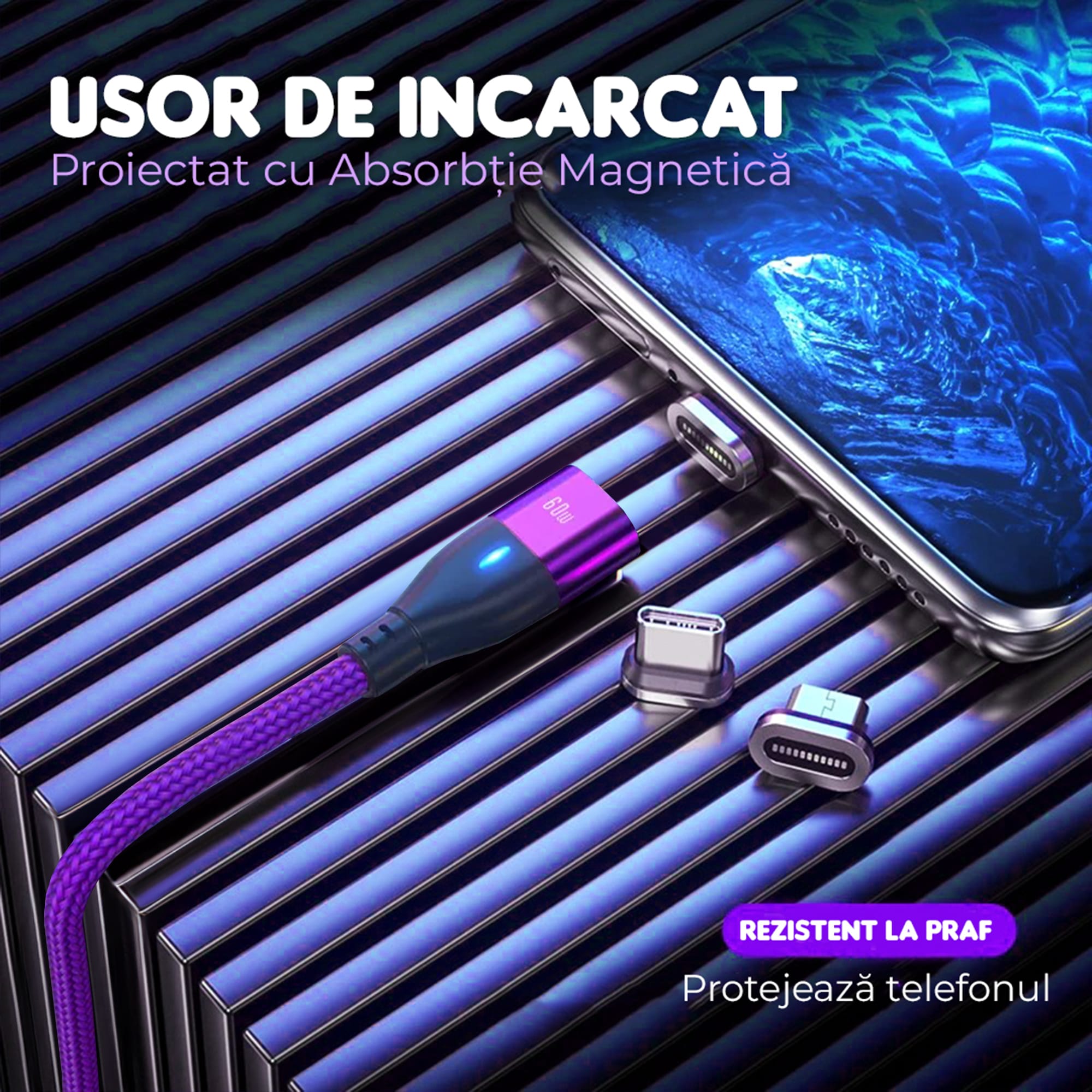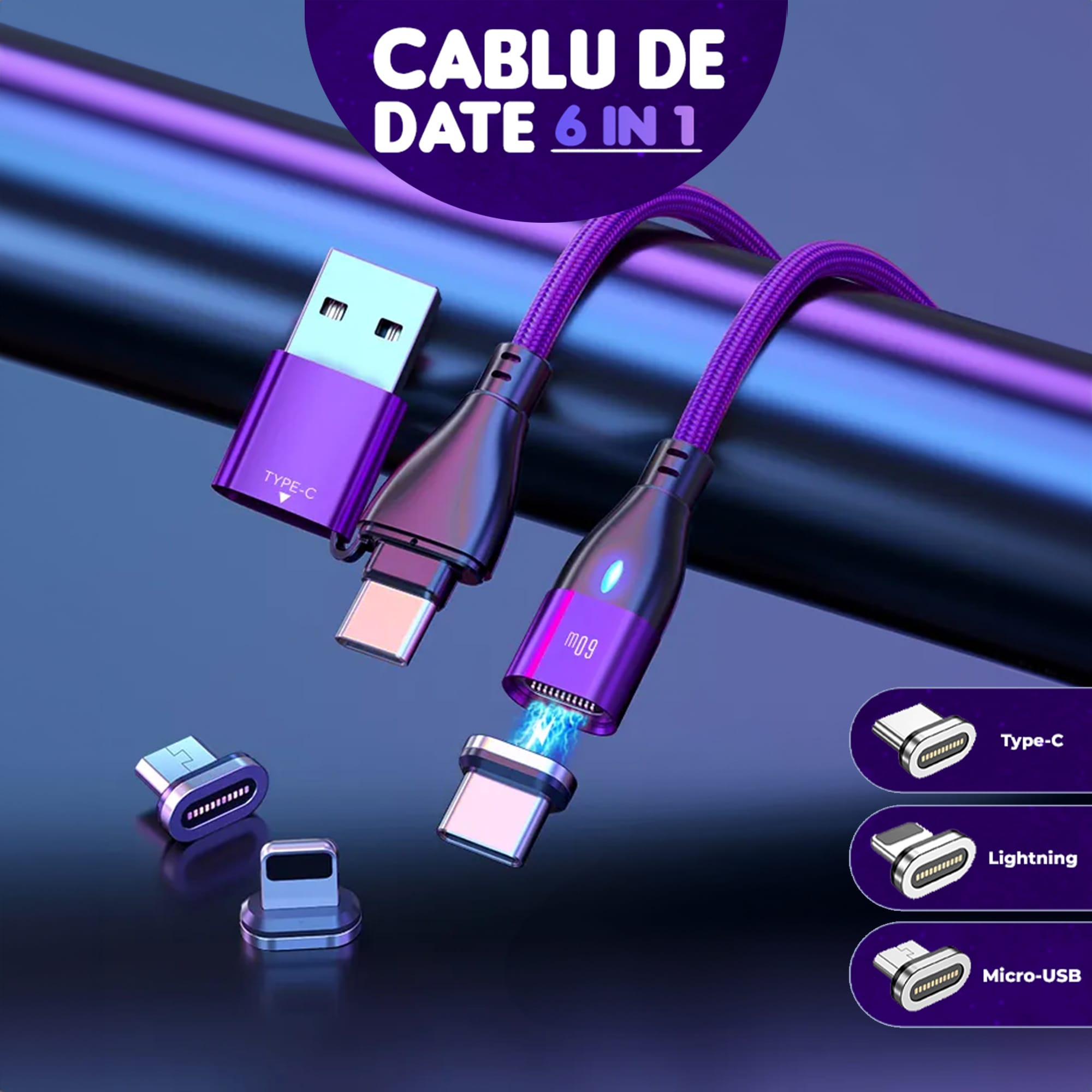 Cablu de date si Incarcare Rapida, Timebox 6 in 1, QC 3.0, 60W, Magnetic, USB, Type C, Tip Lightning, Micro-USB, Compatibil iPhone, Samsung, Huawei – 2m, Mov