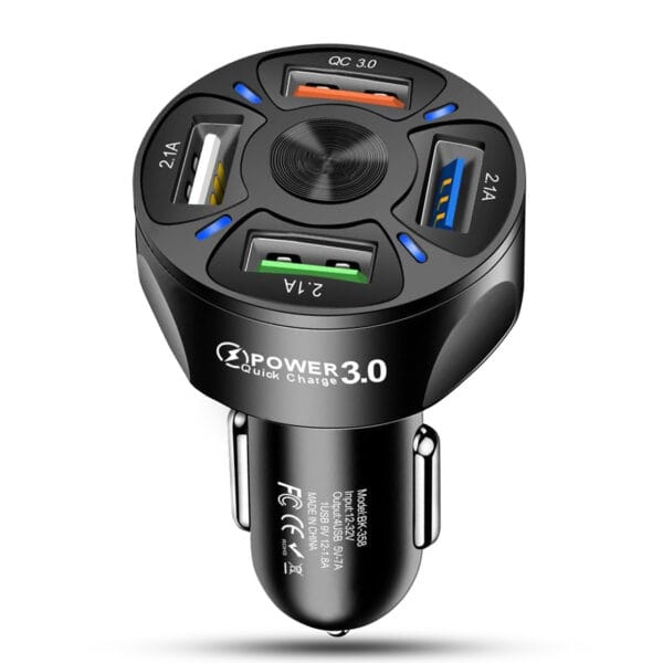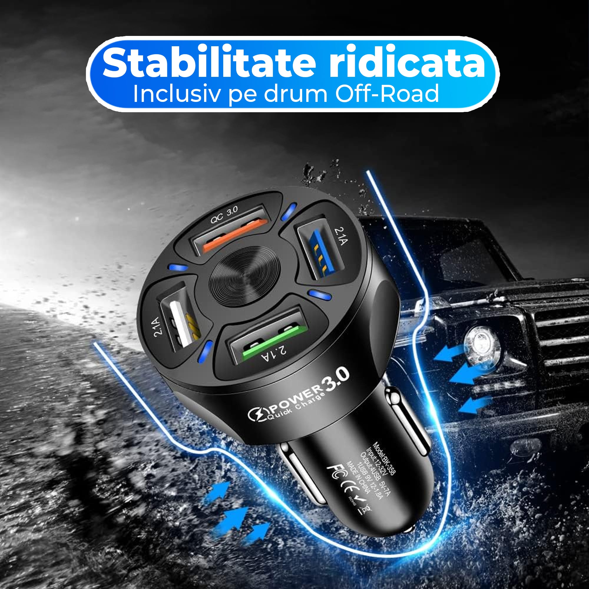- Încărcare Rapidă și Eficientă: Acest încărcător auto Timebox oferă încărcare rapidă și eficientă datorită tehnologiei Super Fast-Charge și celor 4 porturi USB QC 3.0, permițându-ți să îți încarci dispozitivele într-un timp mai scurt.
