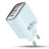 Incarcator Retea Timebox, 3 Porturi, 40W Fast Charge, 2 x Type-C, 1 x USB, Compact, Albastru