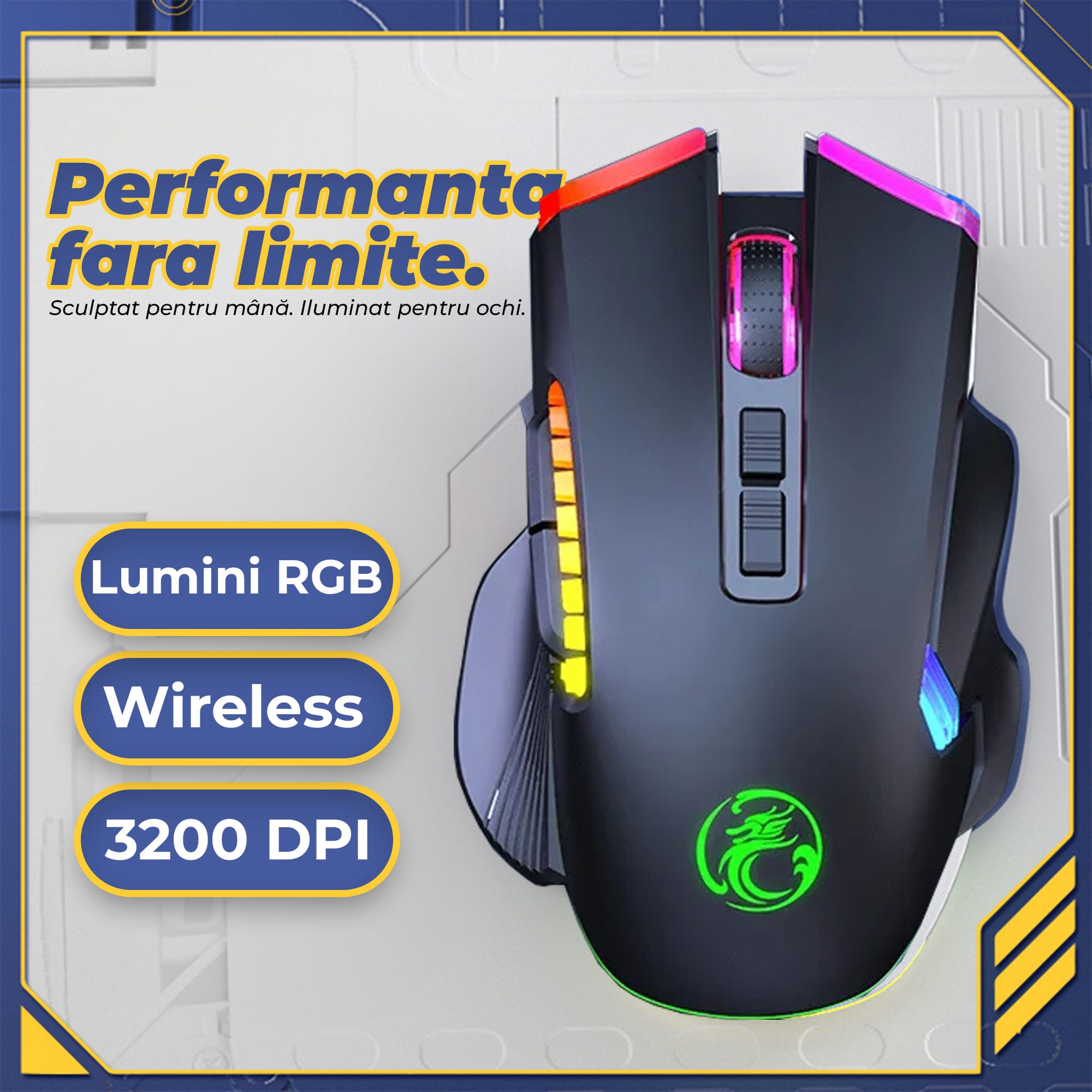 • Conectivitate: Wireless cu USB si 2.4 GHz.