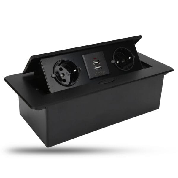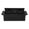 Priza incorporabila in mobilier, Timebox, blat bucatarie, masa sau birou, 2 prize, 2 x USB, incastrabila, deschidere prin buton, 266×118 mm, Negru