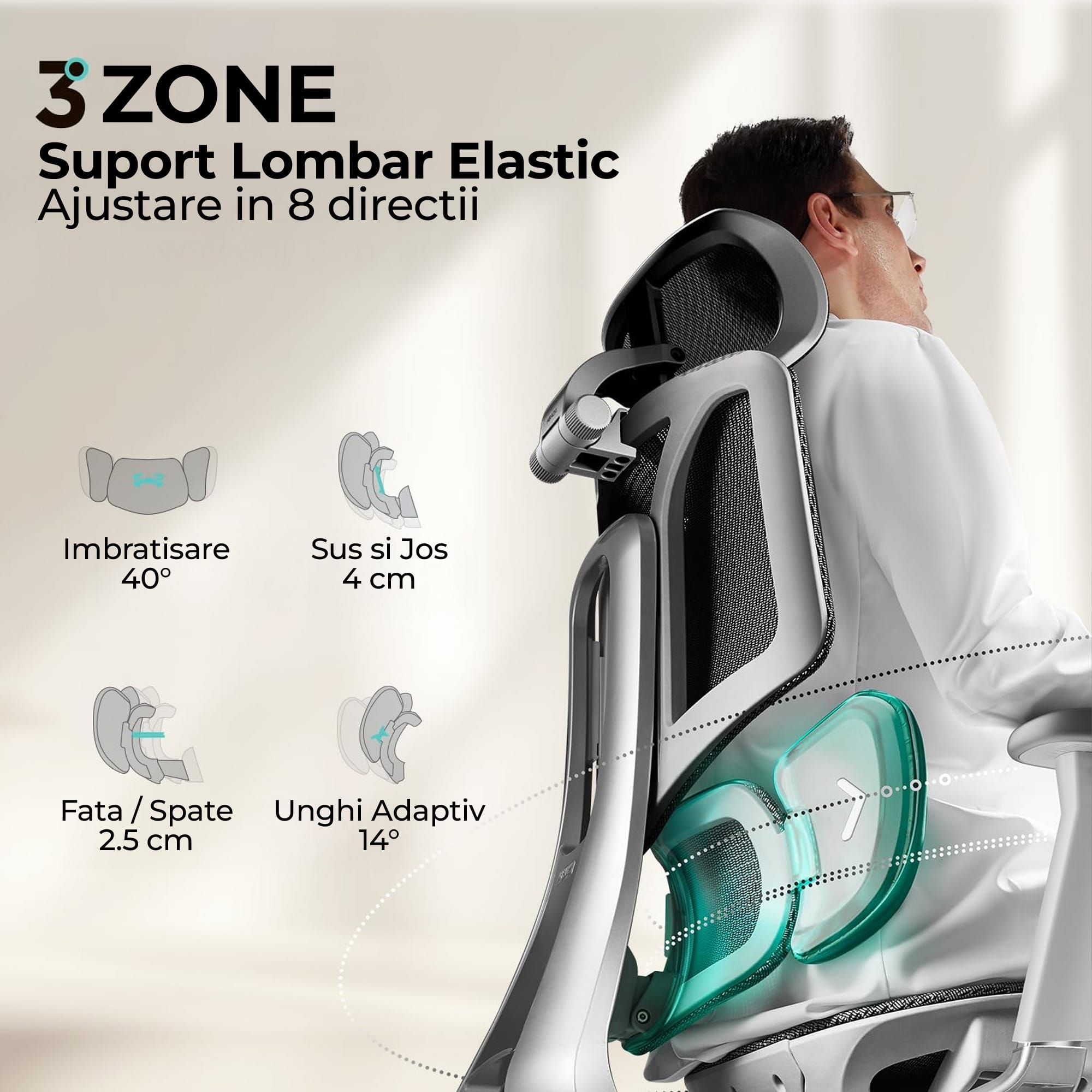Sustinere ergonomica completa – spatar curbat pentru zona lombara, reglaje multiple pentru personalizare